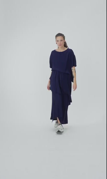 Two-piece Set of Layered Georgette Skirt and Loose Asymmetric T-Shirt