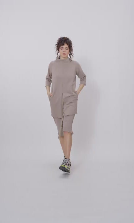 Two-piece Set of Tunic Sweatshirt with Zipper Slits and Cotton Shorts