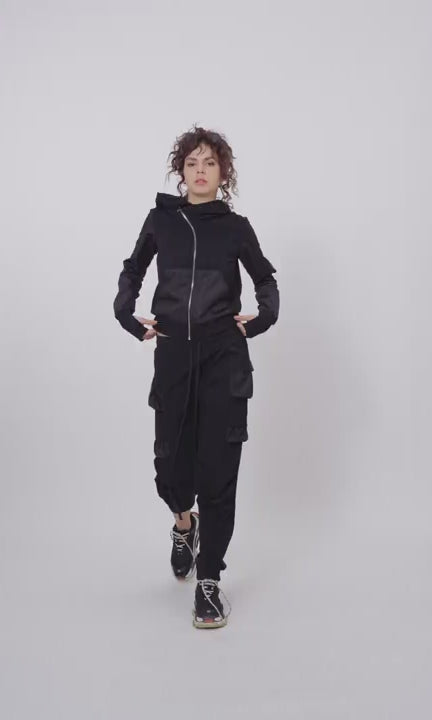Two-piece Set of Jogger Pants and Hoodie with Asymmetric Closure