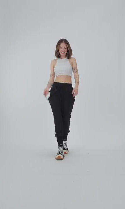 Loose Drop Crotch Pants with Ribbed Cuffs
