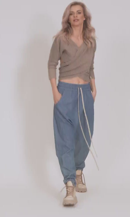 Loose Drop Crotch Pants with Ribbed Cuffs