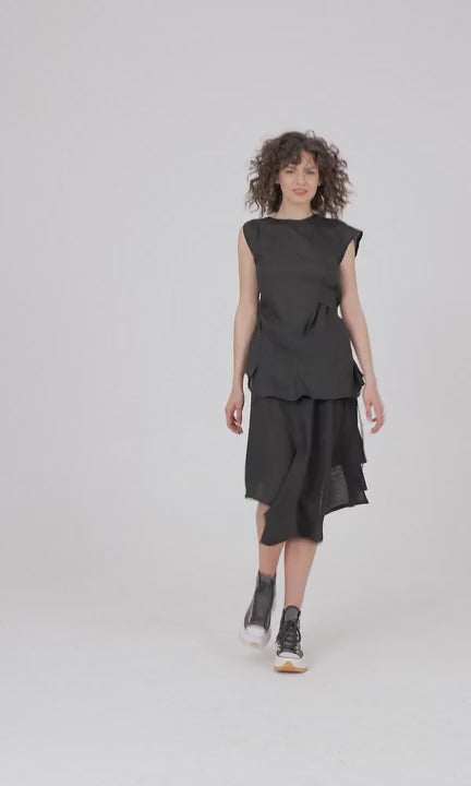 Asymmetric Shoulders Linen Top with Open Back