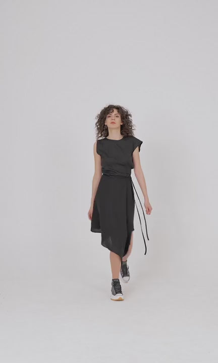 Asymmetric wrap skirt crafted from natural linen fabric, which adds a touch of uniqueness to your total look. A timeless piece worth owning it is a great match with any type of casual to dressy tops or shirts.