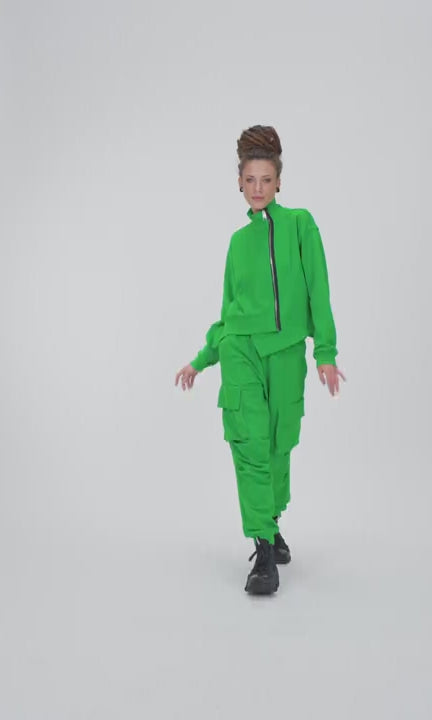 Relaxed sporty pants with cargo pockets. The unique front gathering detail adds a stylish draped silhouette. Their versatility makes them suitable for various activities, from casual outings to lounging at home.
