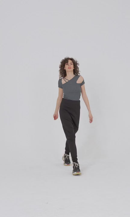 A short sleeved top, ideal to match with any skirt, shorts or pants. The cut outs on the neckline add a unique touch to a simple top.