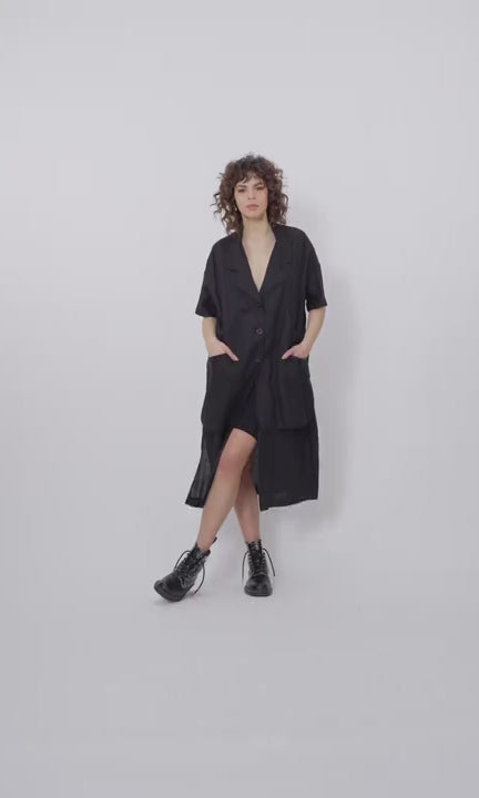 А timeless blend of style, functionality and comfort. The standout feature of this tunic shirt is its apron-style design. It can be easily styled as a shirt, dress or a layering vest.