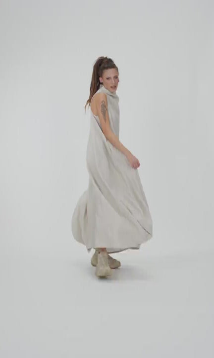 A sleeveless maxi dress made of 100% Linen fabric. The cocoon silhouette gracefully drapes around the body and complements various body shapes. The design of this maxi dress strikes the perfect balance between contemporary fashion and classic charm. A minimalist elegance that allows for effortless styling and accessorizing.