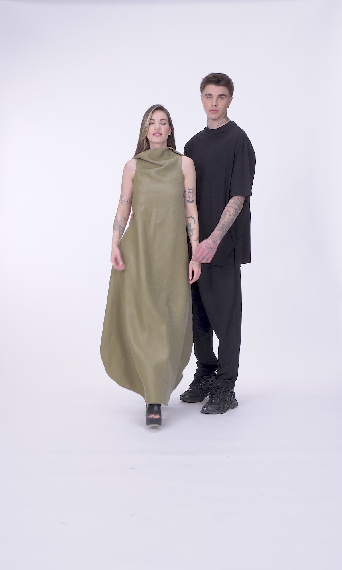 A sleeveless maxi dress made of 100% Linen fabric. The cocoon silhouette gracefully drapes around the body and complements various body shapes. The design of this maxi dress strikes the perfect balance between contemporary fashion and classic charm. A minimalist elegance that allows for effortless styling and accessorizing.