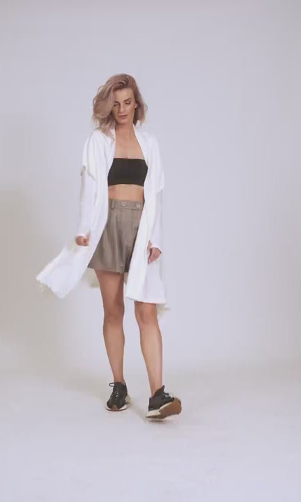 This unique linen knit cardigan can be worn over a dress or pants and it will add a nice touch to your outfit. Great as an overgarment too, it can be perfect for the chilly summer nights.