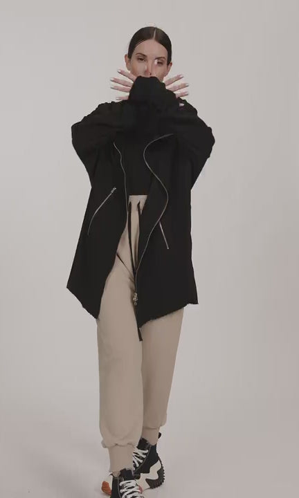 A hooded sweatshirt with asymmetric closure and thumbholes. Designed to elevate your casual look, whether you're heading to the gym, running errands, or just chilling with friends.