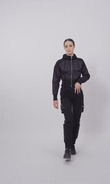 Narrow fit cuffed joggers with zippered side pockets and mixed fabric legs. Pair with a matching top and your favourite sneakers for a finished look.