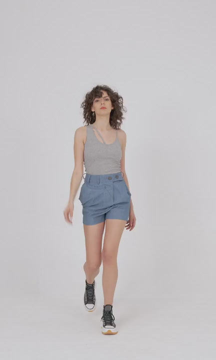 Baggy shorts twisted at the front for a playful touch that combine comfort and fashion. Easily styled with either a fitted or a masculine top.