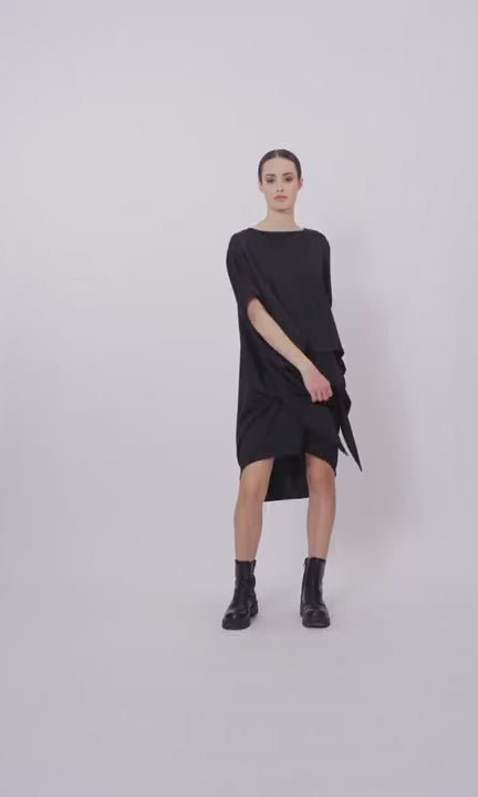 A contemporary style mini dress with horizontal tuck details. Perfect garment for those who want to stand out from the crowd. The versatile nature of this dress makes it suitable for various occasions.