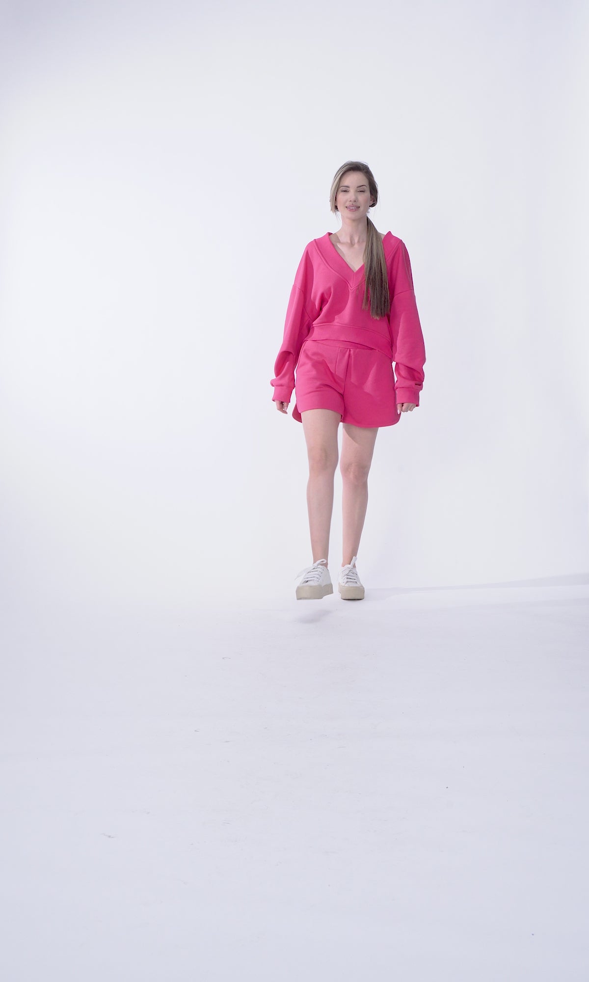 Off-Shoulder V-Neck Cotton Sweatshirt